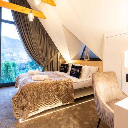 Obie wille są wykończone ze smakiem i dbałością o najdrobniejszy szczegół. Każda z nich oferuje miejsce nawet dla 10 osób, saunę oraz własne jacuzzi na tarasie, z którego można podziwiać przepiękną panoramę Tatr.