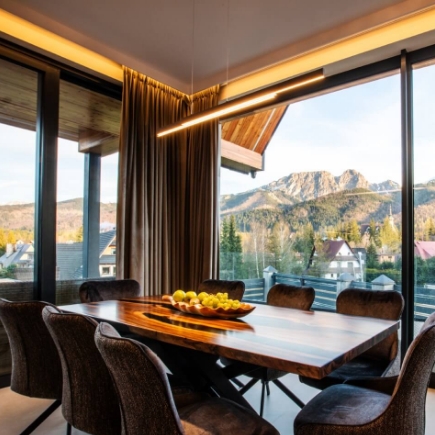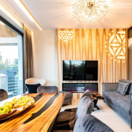 Wille oferują 4 eleganckie sypialnie z łóżkami dla 8 osób i przestronny salon z sofą dla 2 dodatkowych gości. W pełni wyposażony aneks kuchenny pozwala cieszyć się wspólnymi posiłkami, kominek sprawia, że wieczory nabierają wyjątkowej atmosfery, a duże okna otwierają widok na majestatyczne Tatry.